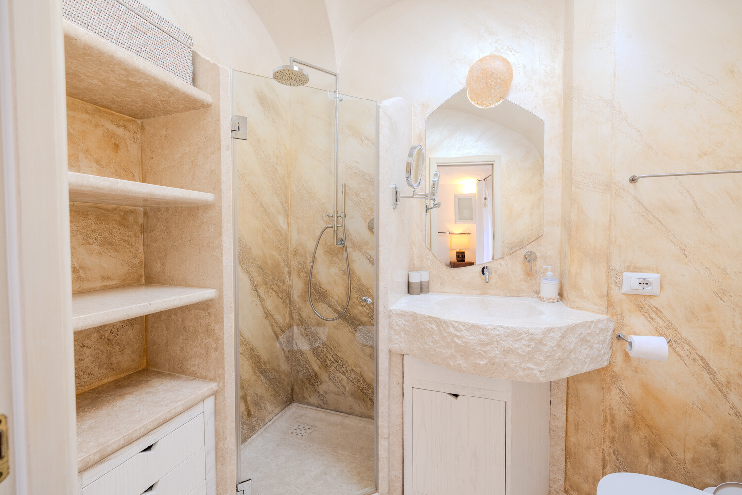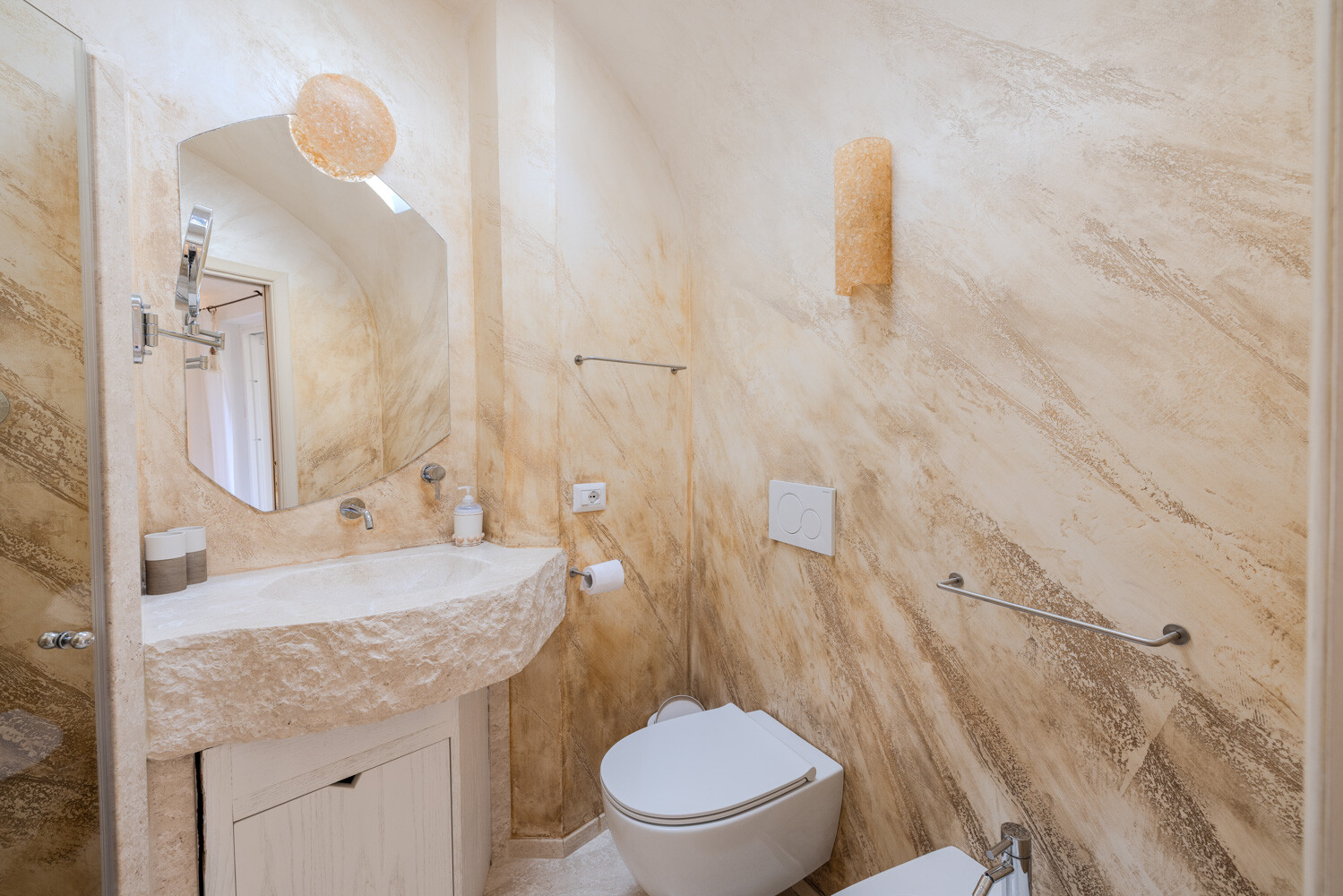 A refined interplay of covered terraces, a large panoramic solarium and an infinity pool with sea view define the outdoor spaces, embellished with lounge areas and relaxation areas surrounded by greenery. Each outdoor environment is designed to welcome moments of absolute well-being, amidst the sea breeze and the scents of the Mediterranean maquis.