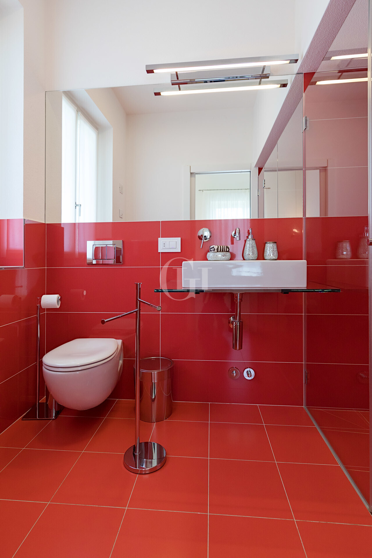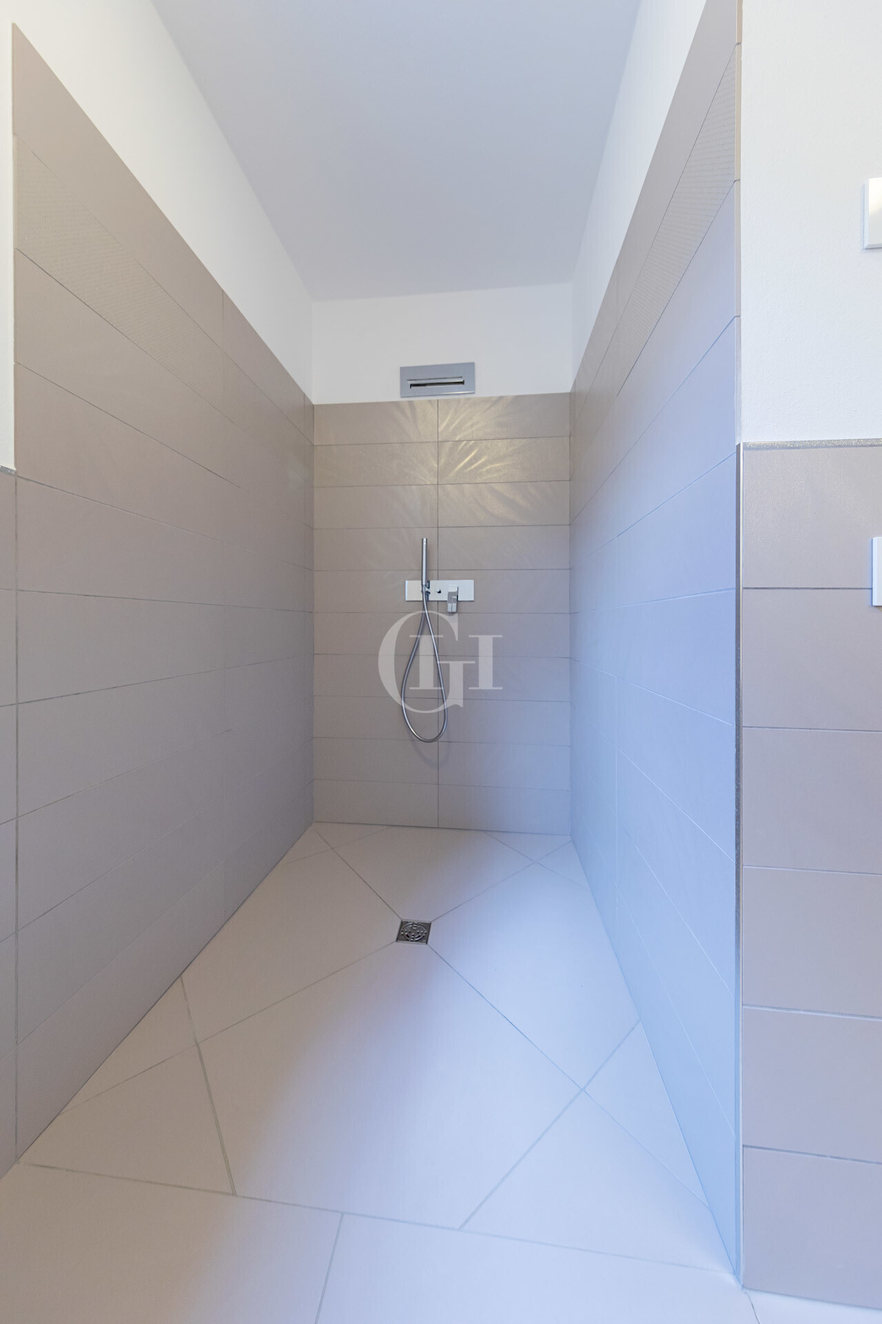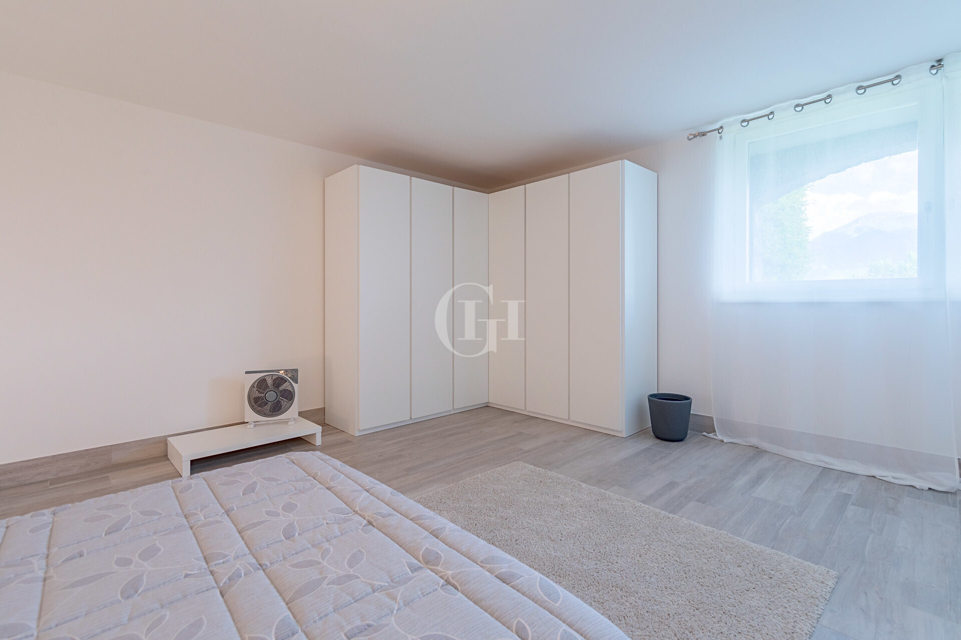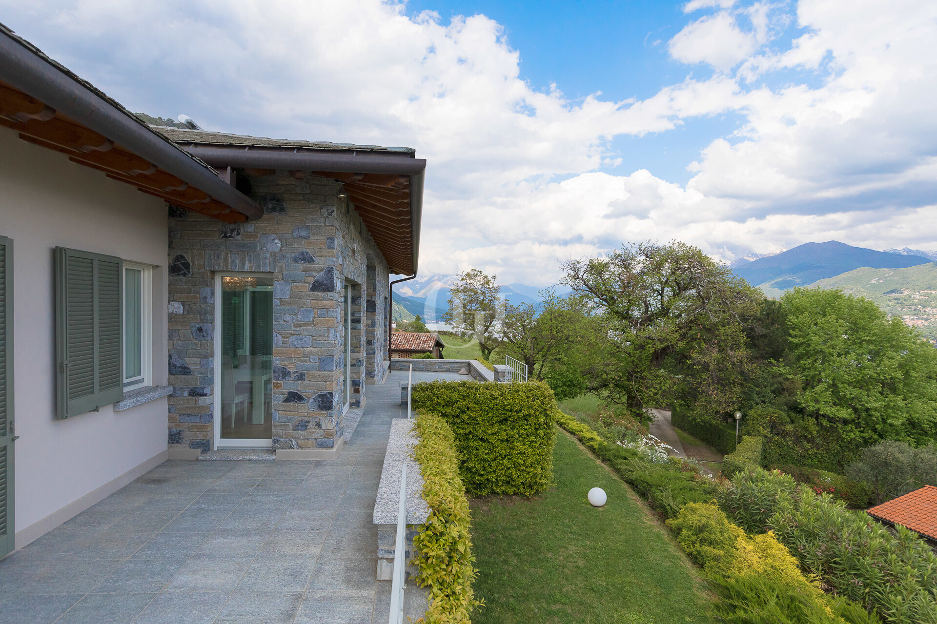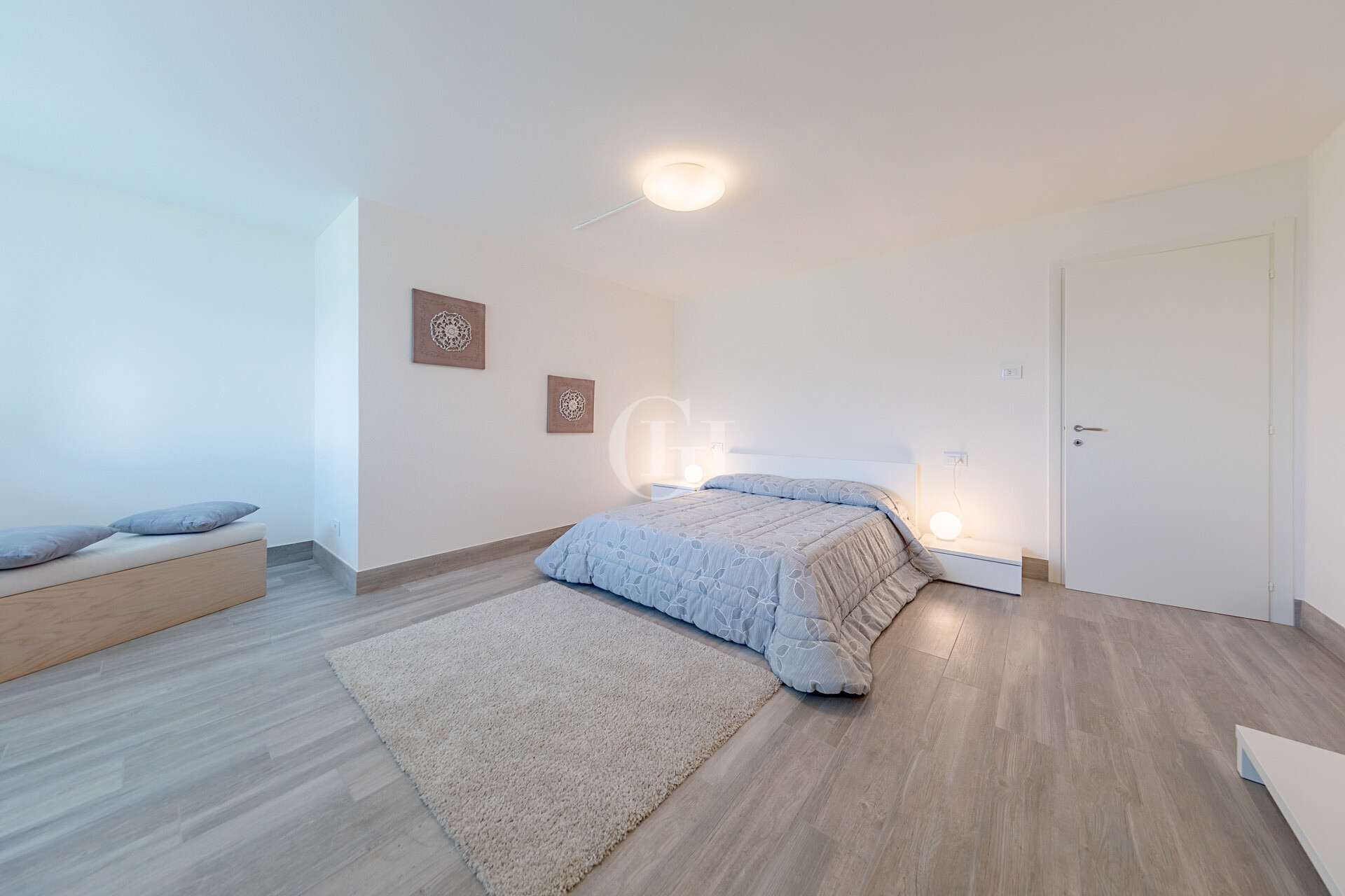 The property is characterized by exceedingly bright rooms: the orientation of the villa and the immense full-wall windows with which the dwelling has been almost entirely designed guarantee perfect natural lighting throughout the day; from the loft, in particular, there is a thrilling view of the lake and the Alps, whose majestic profile begins to silhouette beyond the lake to the north.
