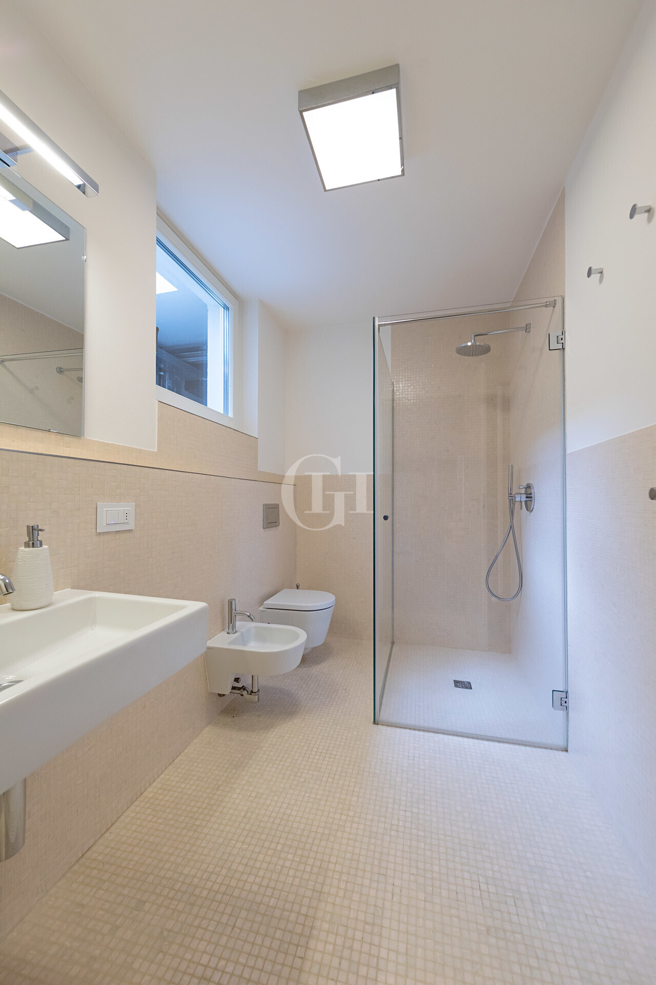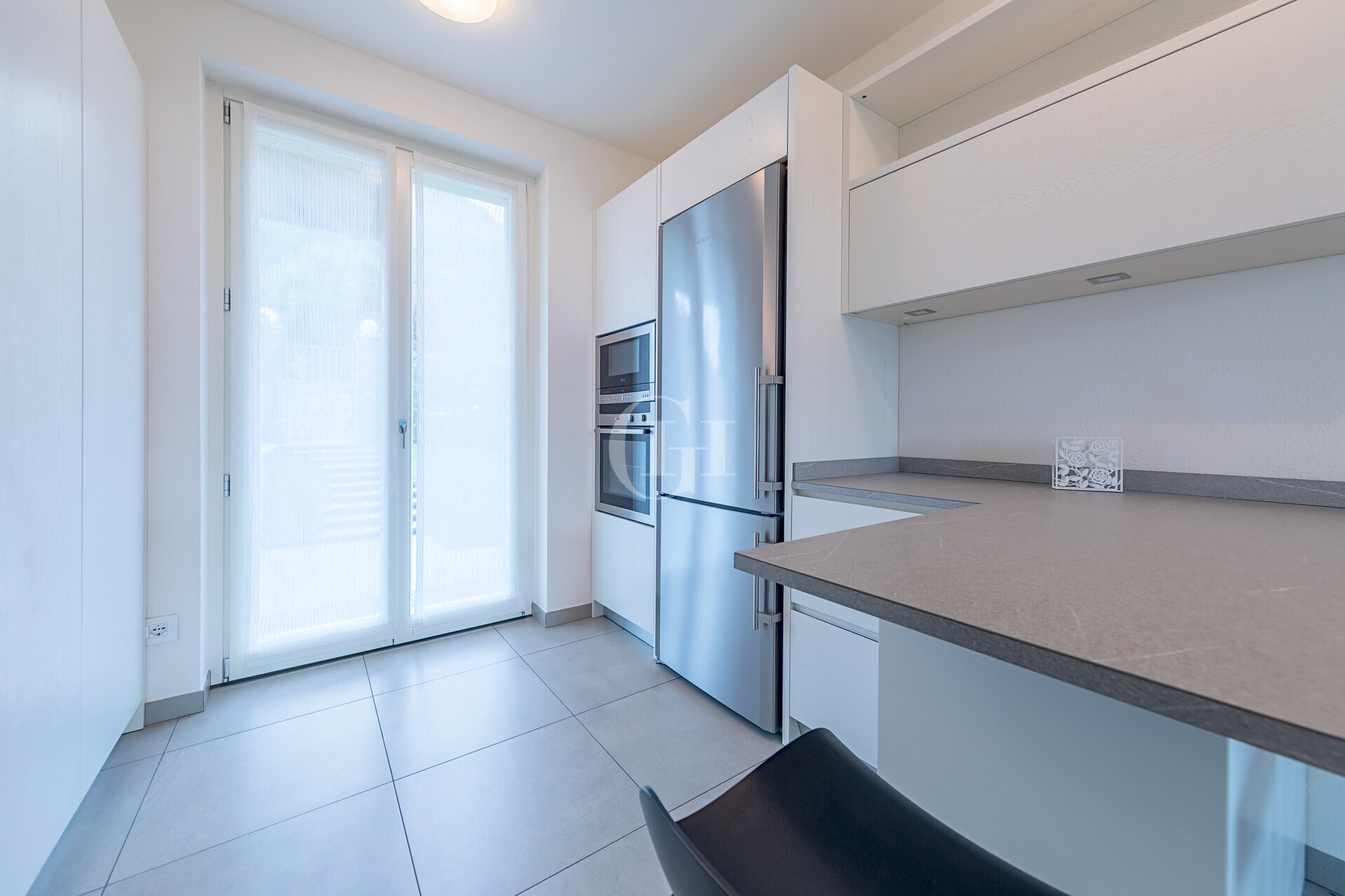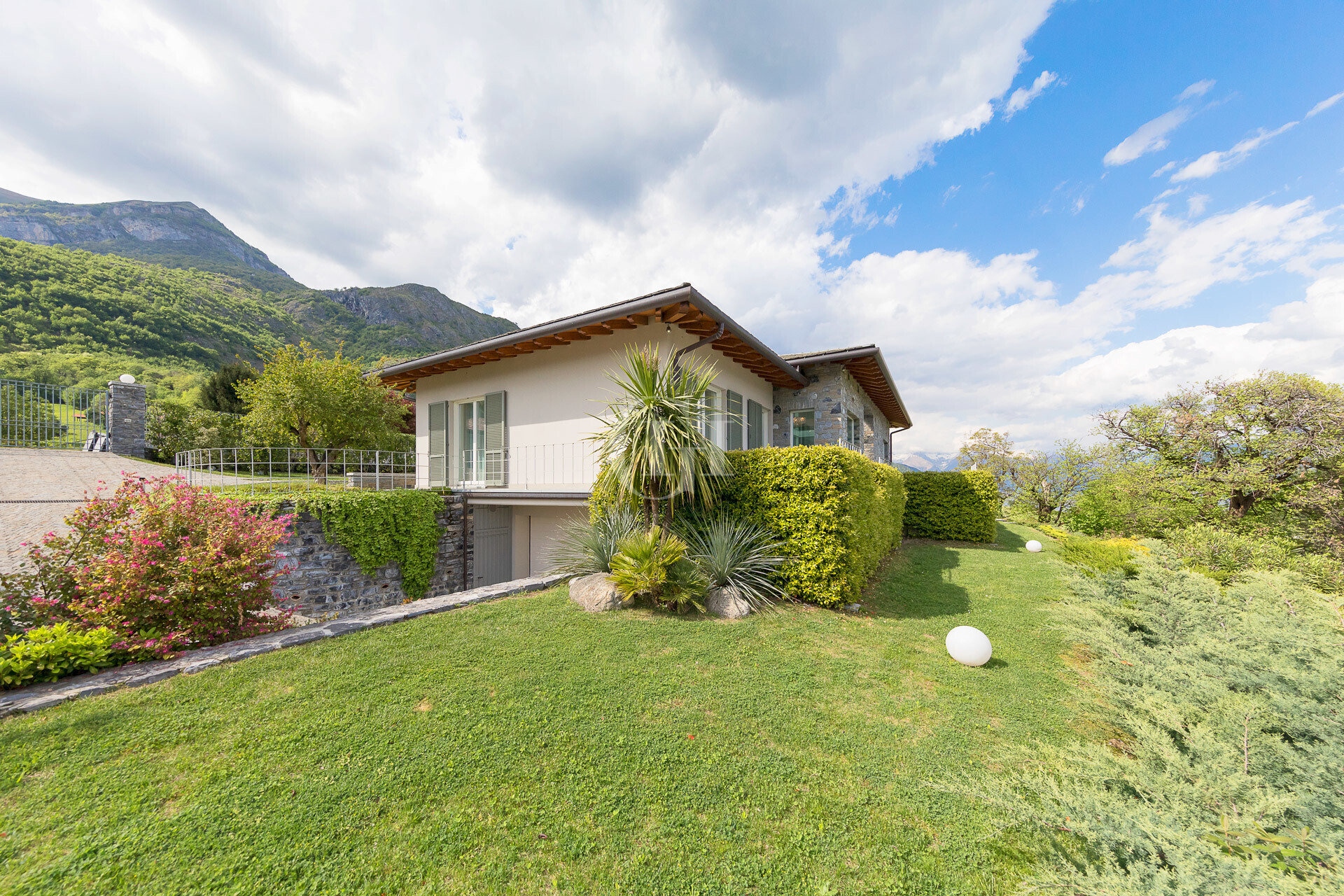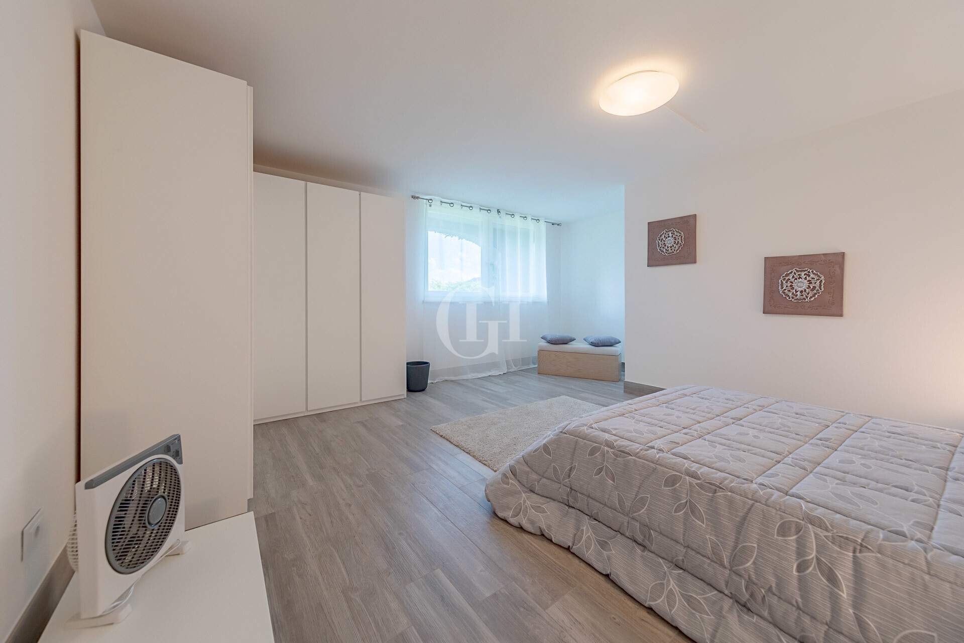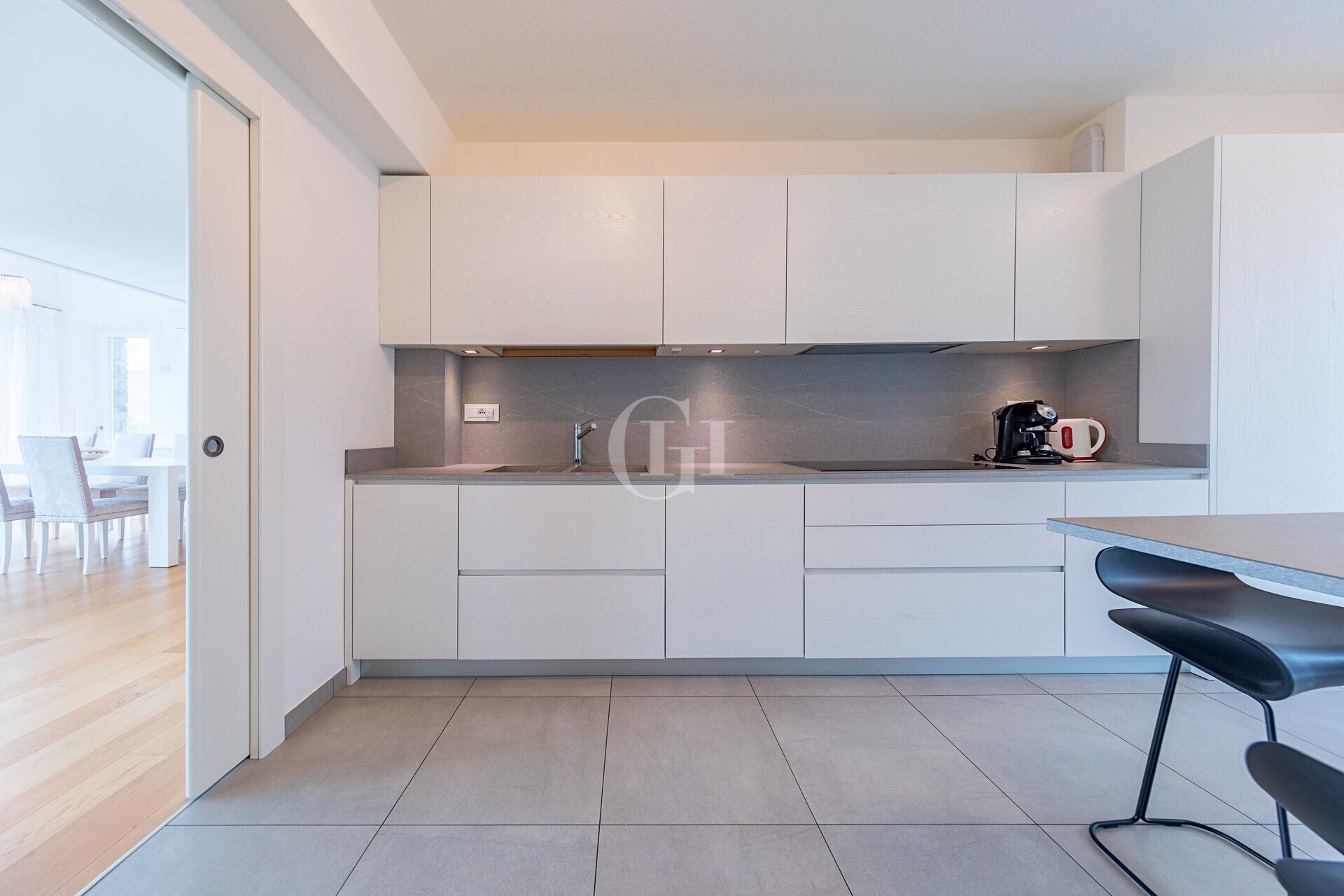 The property is characterized by exceedingly bright rooms: the orientation of the villa and the immense full-wall windows with which the dwelling has been almost entirely designed guarantee perfect natural lighting throughout the day; from the loft, in particular, there is a thrilling view of the lake and the Alps, whose majestic profile begins to silhouette beyond the lake to the north.