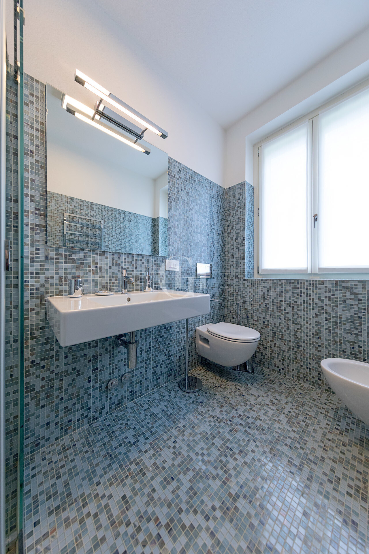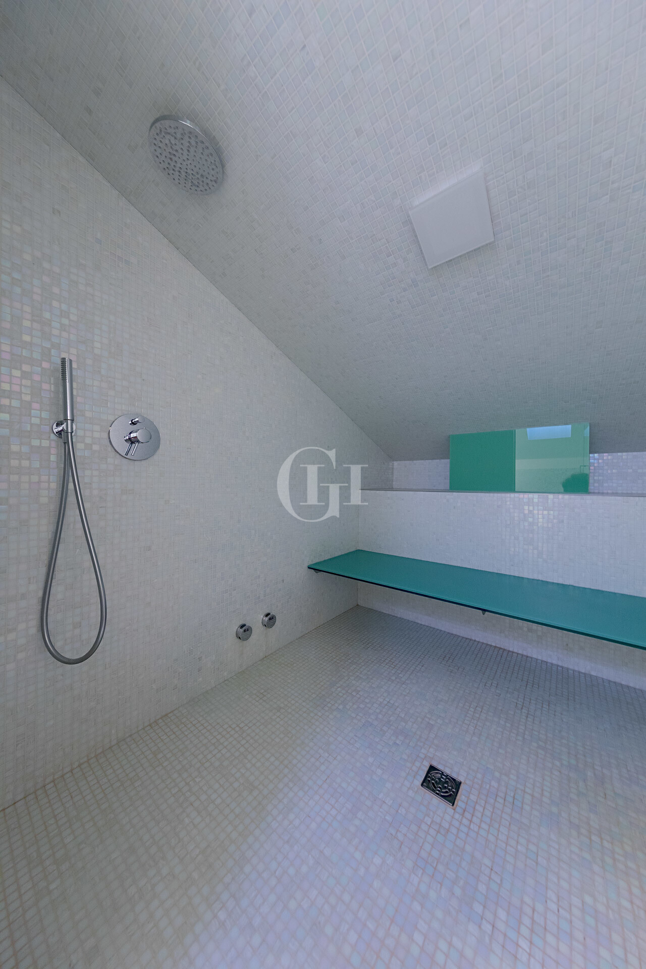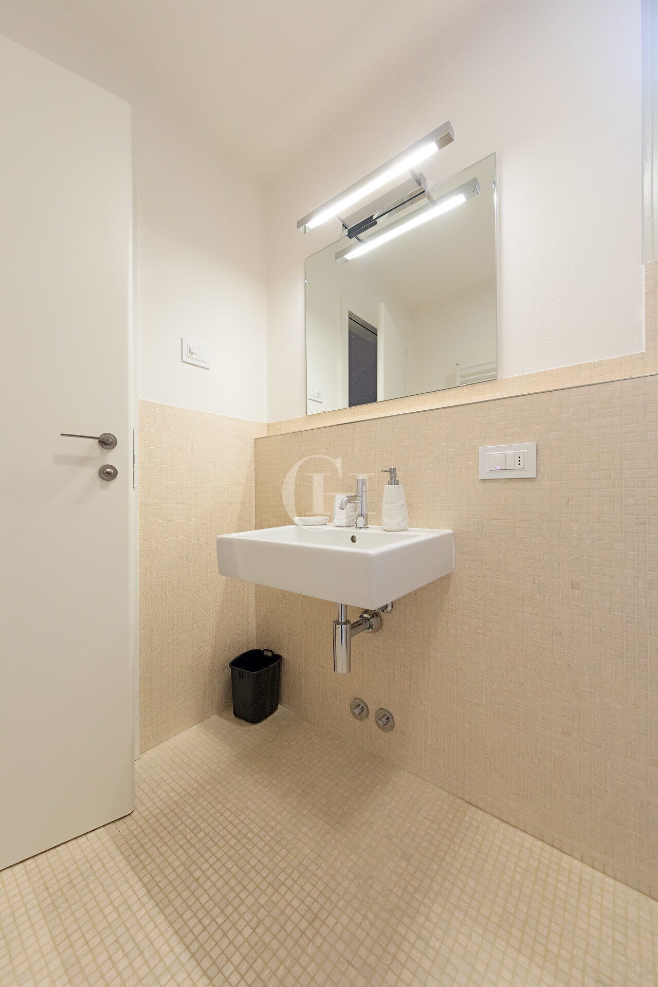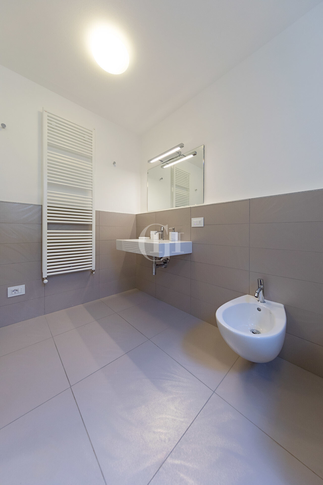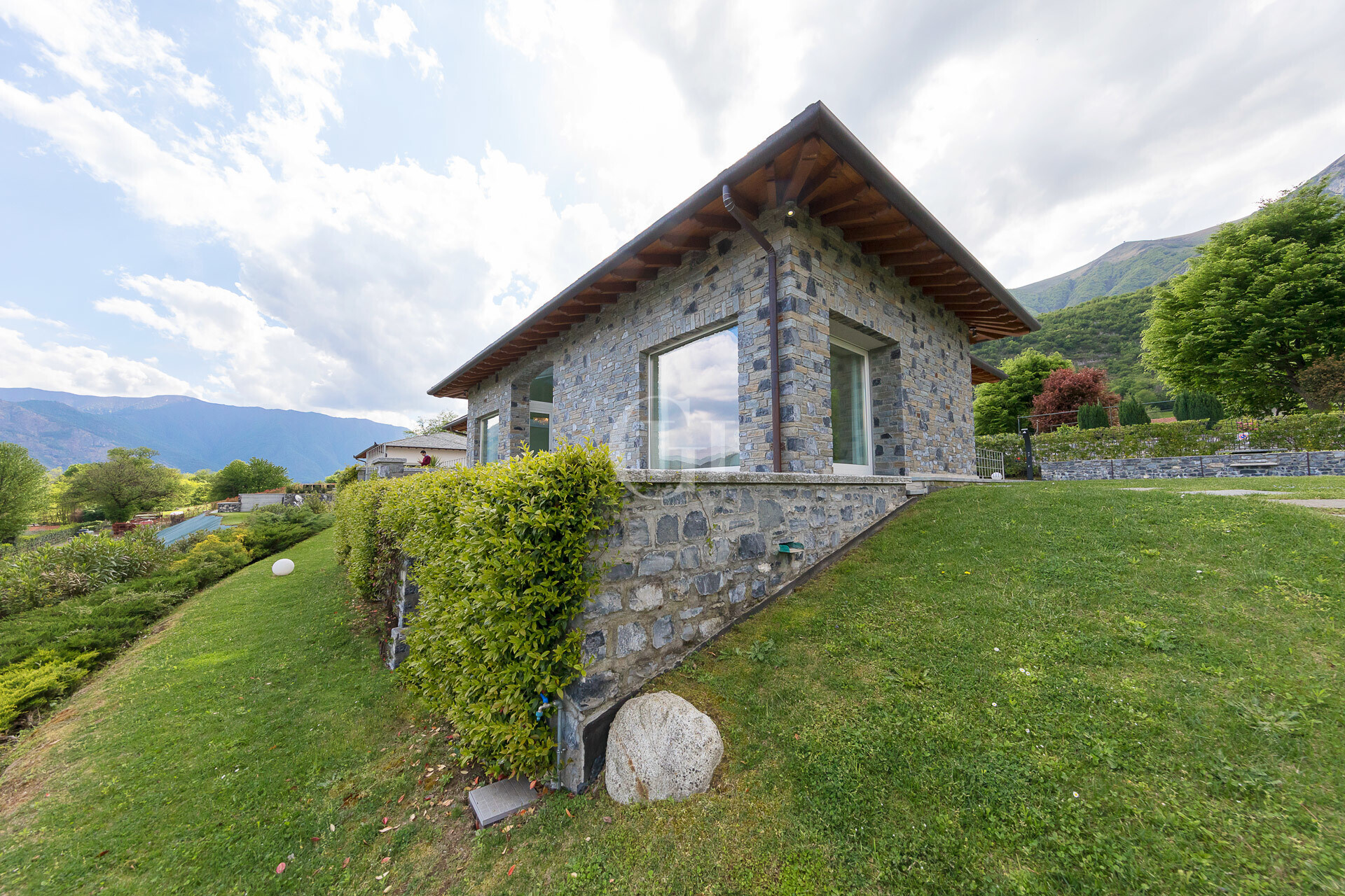 The property is characterized by exceedingly bright rooms: the orientation of the villa and the immense full-wall windows with which the dwelling has been almost entirely designed guarantee perfect natural lighting throughout the day; from the loft, in particular, there is a thrilling view of the lake and the Alps, whose majestic profile begins to silhouette beyond the lake to the north.