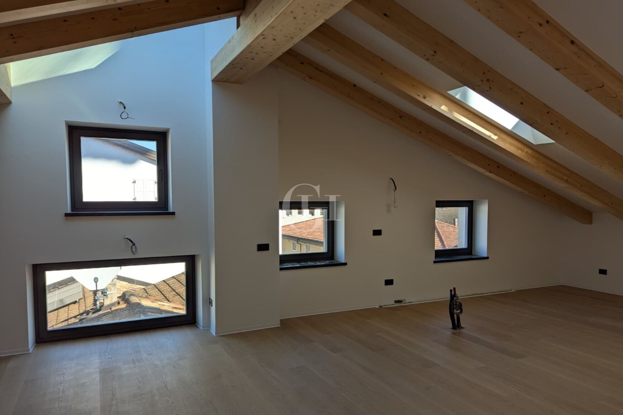 Gli spazi interni, sapientemente progettati, offrono ambienti luminosi ed eleganti, grazie a finestre e velux che valorizzano la luce naturale durante tutto l’arco della giornata.