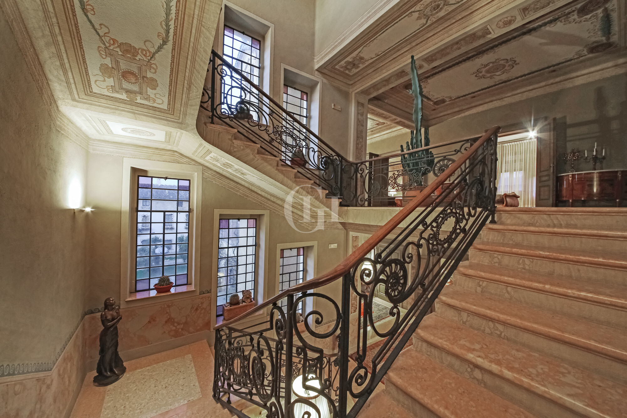 Questa dimora storica è stata oggetto di un meticoloso restauro architettonico, che ha preservato ogni dettaglio originale con materiali pregiati e finiture di altissimo livello. L’atmosfera è quella delle grandi residenze d’epoca: vetrate artistiche, saloni…