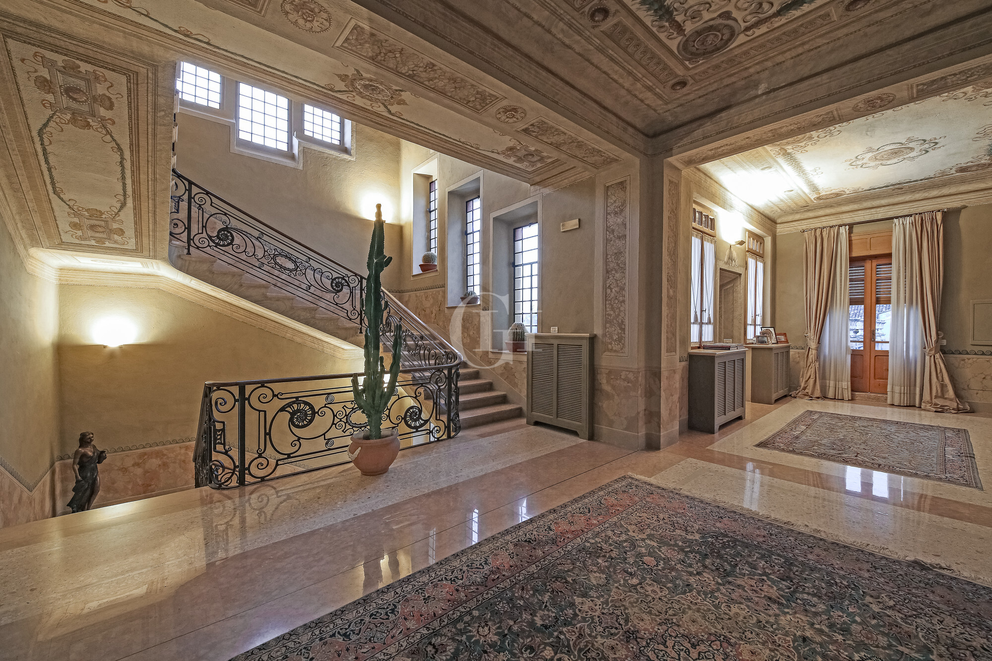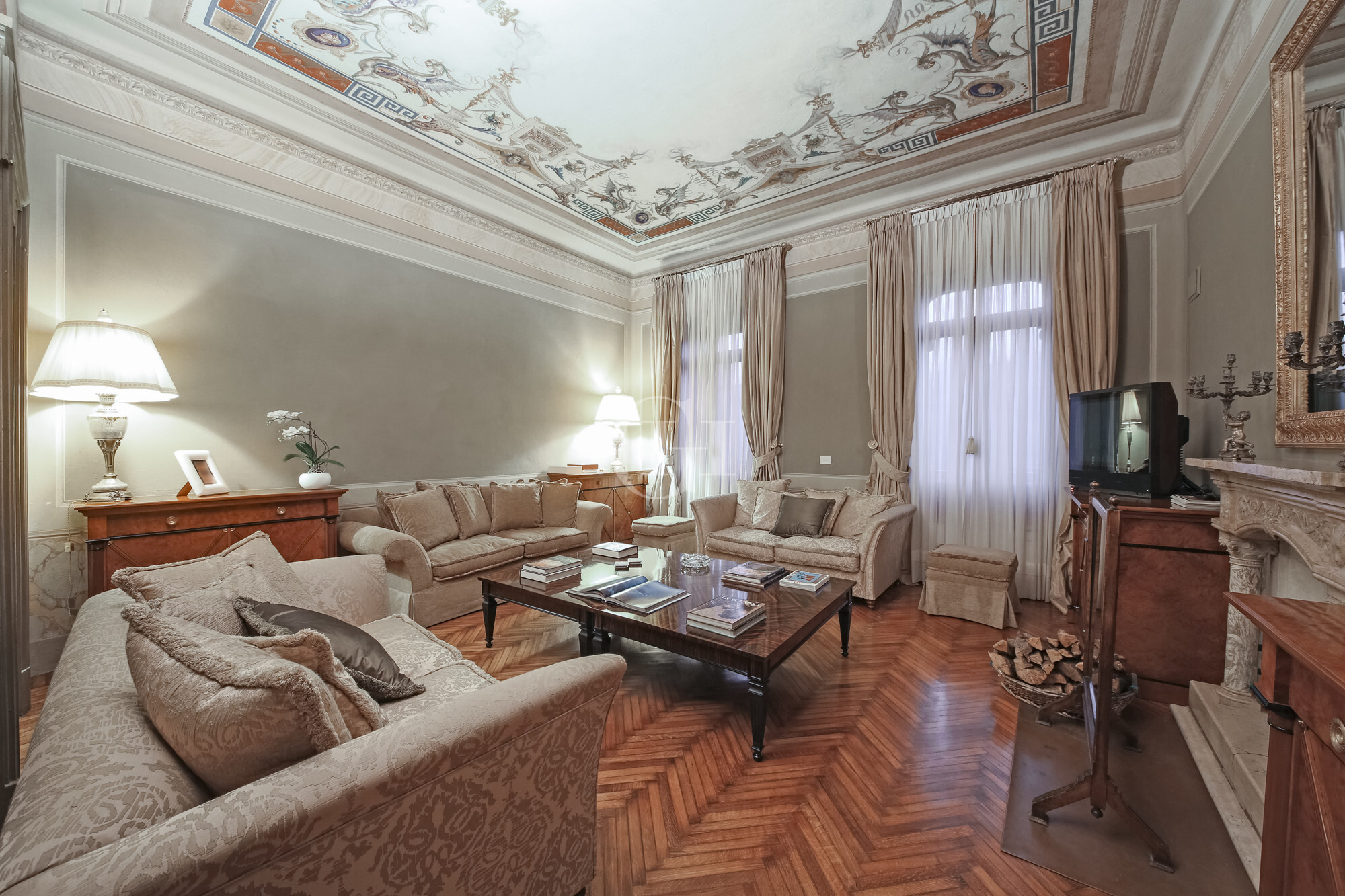 Questa dimora storica è stata oggetto di un meticoloso restauro architettonico, che ha preservato ogni dettaglio originale con materiali pregiati e finiture di altissimo livello. L’atmosfera è quella delle grandi residenze d’epoca: vetrate artistiche, saloni affrescati perfetti per ricevimenti, una scenografica scalinata che conduce alle camere da letto, tutte con bagno en suite, impreziosite da marmi raffinati e ferro battuto lavorato a mano.