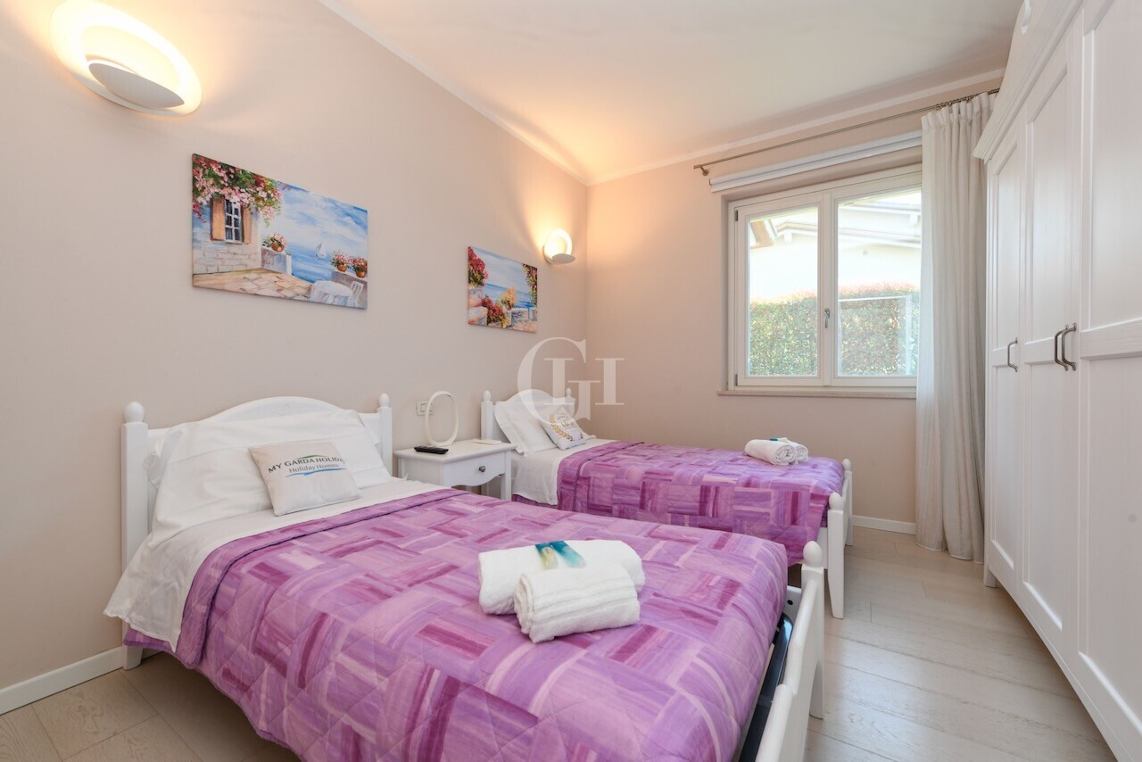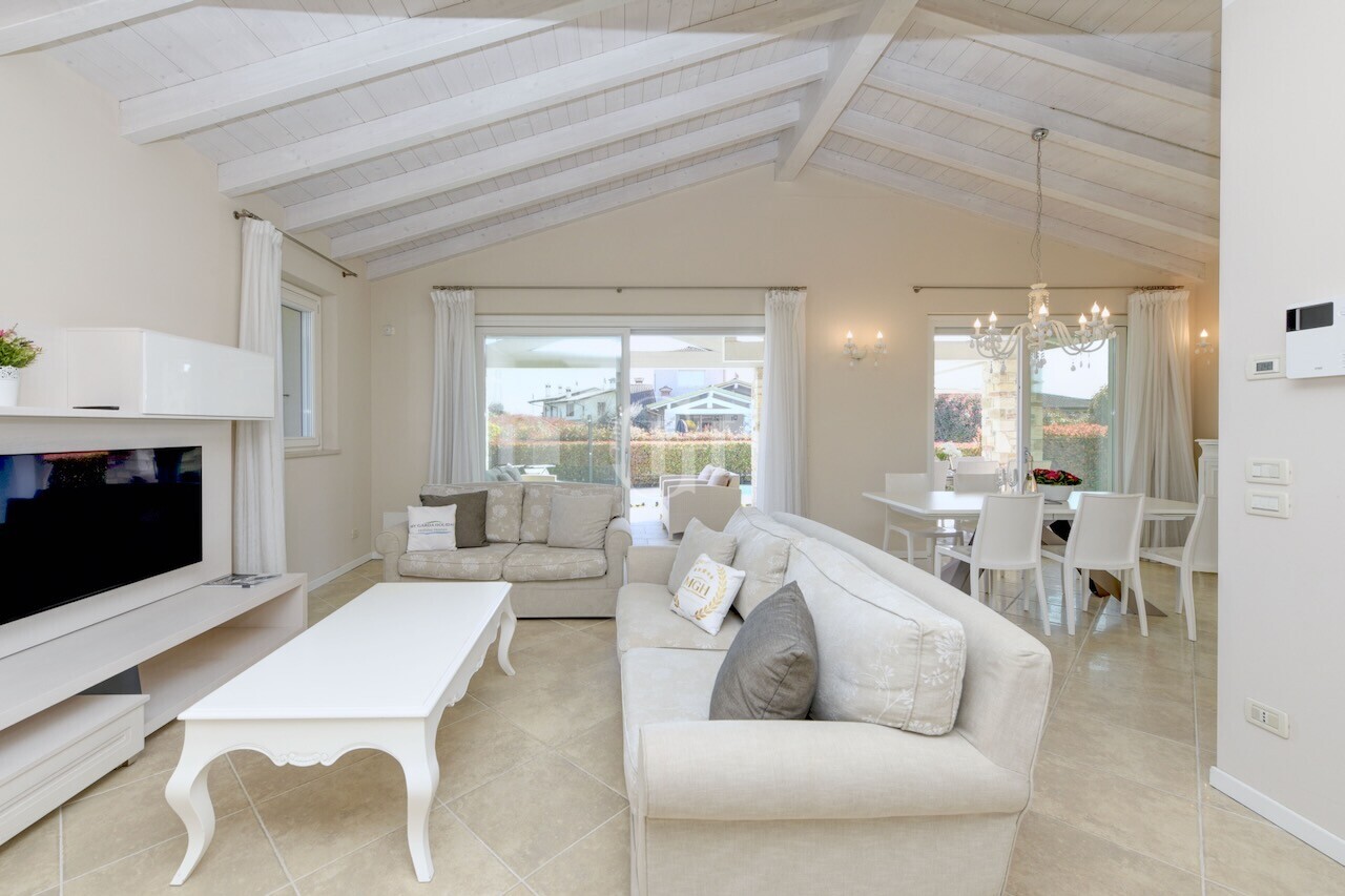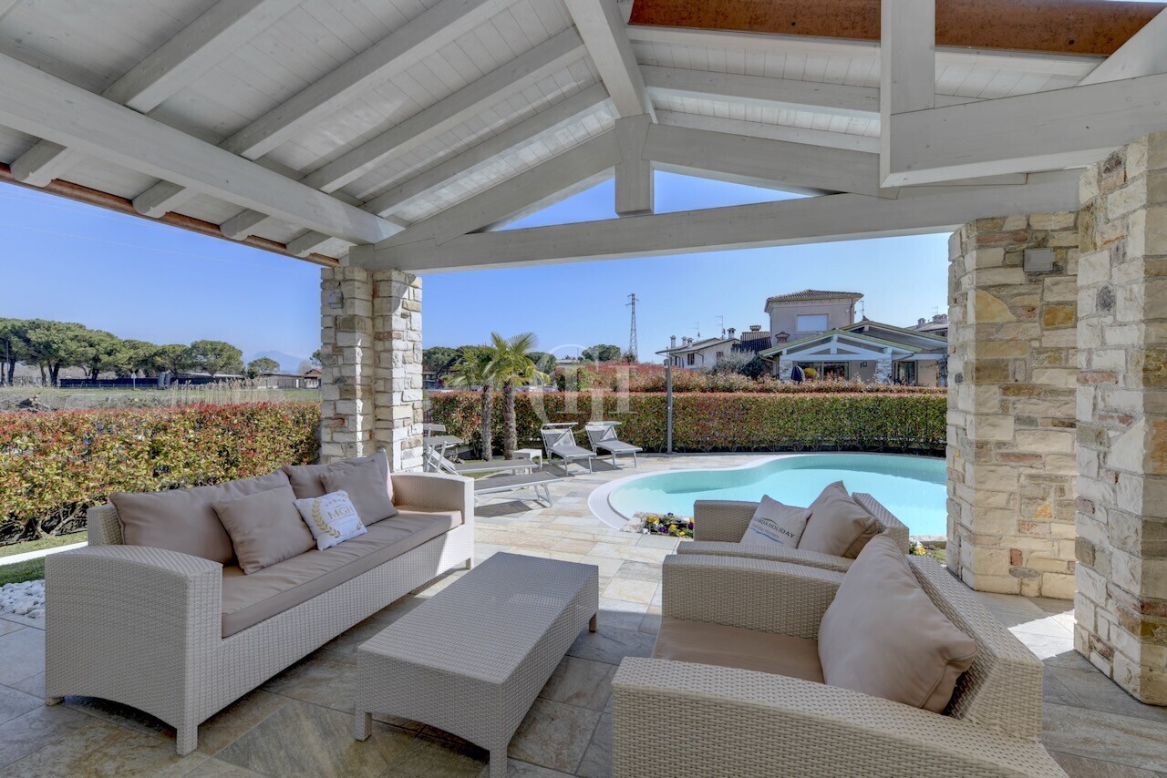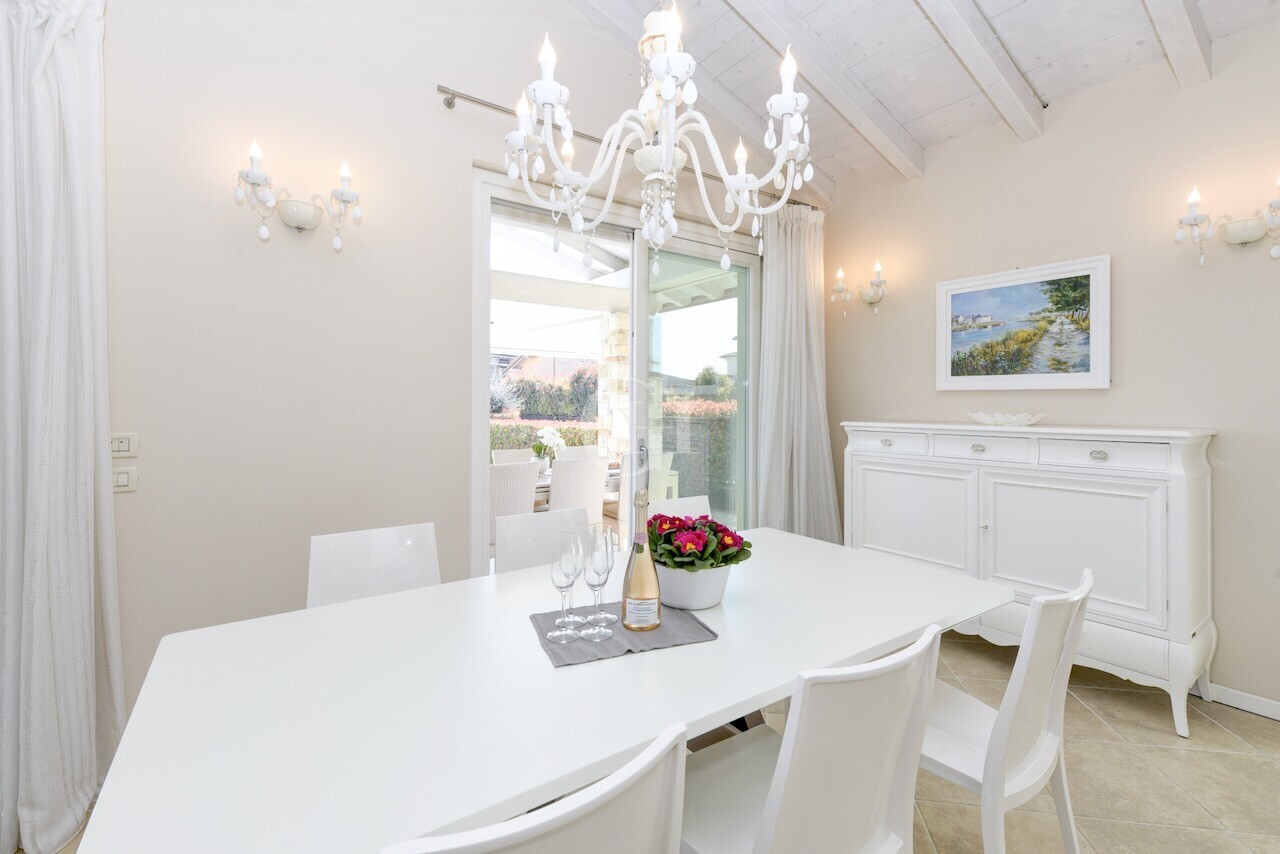 A Sirmione, a soli cinquecento metri dal lungolago, sorge una villa che non è solo una casa, ma una vera sintesi di raffinatezza e attenzione ai dettagli. Si trova all’interno di un piccolo borgo composto da quindici ville completamente indipendenti: un contesto che offre la sicurezza di non essere isolati, pur mantenendo l’esclusiva libertà e riservatezza di una residenza singola. Varcando il cancello si percepisce subito che qui nulla è stato lasciato al caso: è un’abitazione ideata e costruita con materiali e dettagli che raramente si incontrano sul mercato.