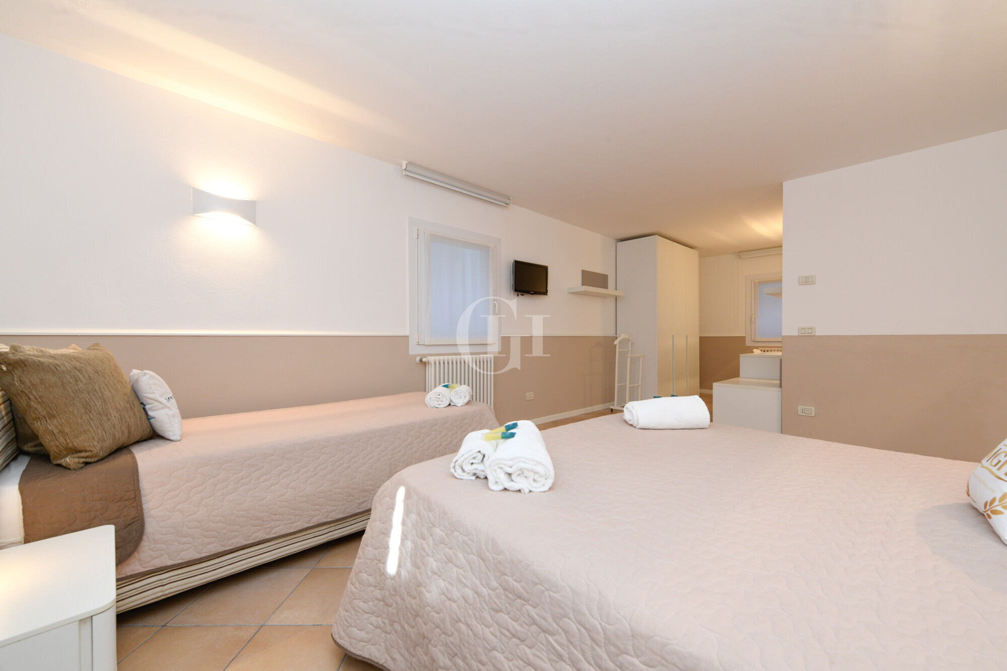 All’esterno, il giardino è un’oasi privata di quasi cinquecento metri quadri. La protagonista è la piscina: riscaldata, illuminata da LED multicolore, con sistema a sale, pronta ad accogliere un tuffo in qualsiasi stagione. È uno spazio che sa regalare emozioni, di giorno e di sera, in estate come in inverno. Qui ogni dettaglio è pensato per vivere al meglio l’outdoor: il prato perfettamente curato, l’impianto di irrigazione automatico, le zone prendisole che invitano a rilassarsi.
