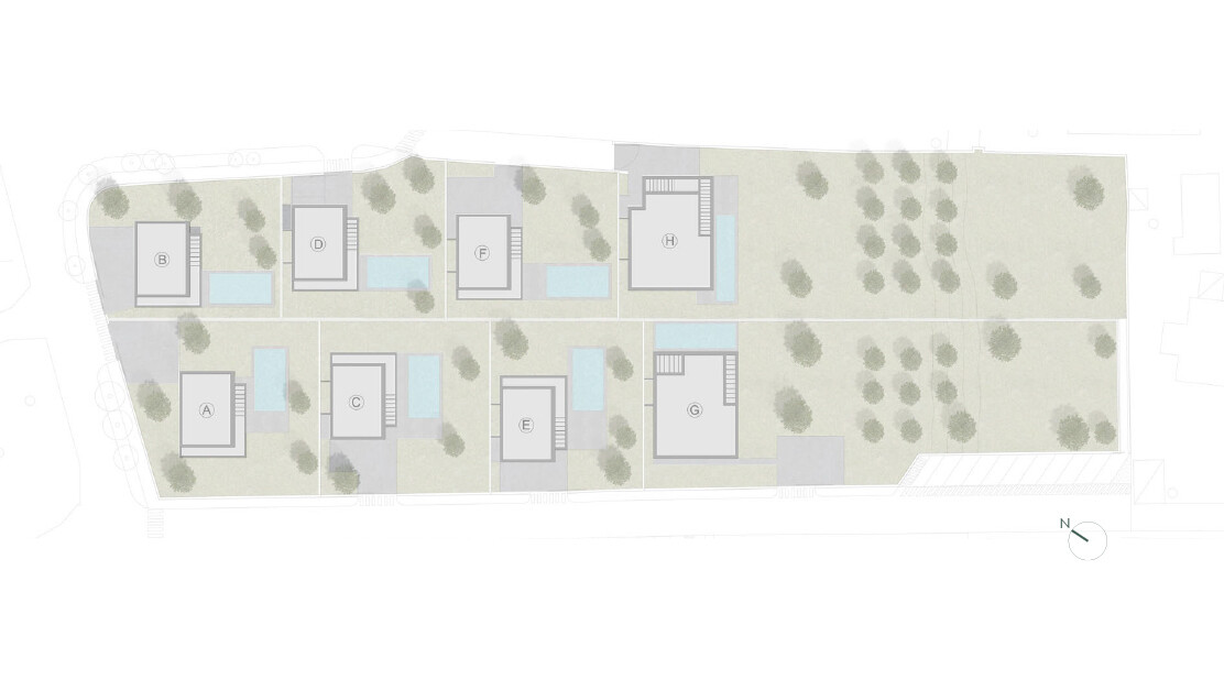 Проект предусматривает строительство двух одноэтажных и шести двухэтажных вилл, в частности, одной из них.