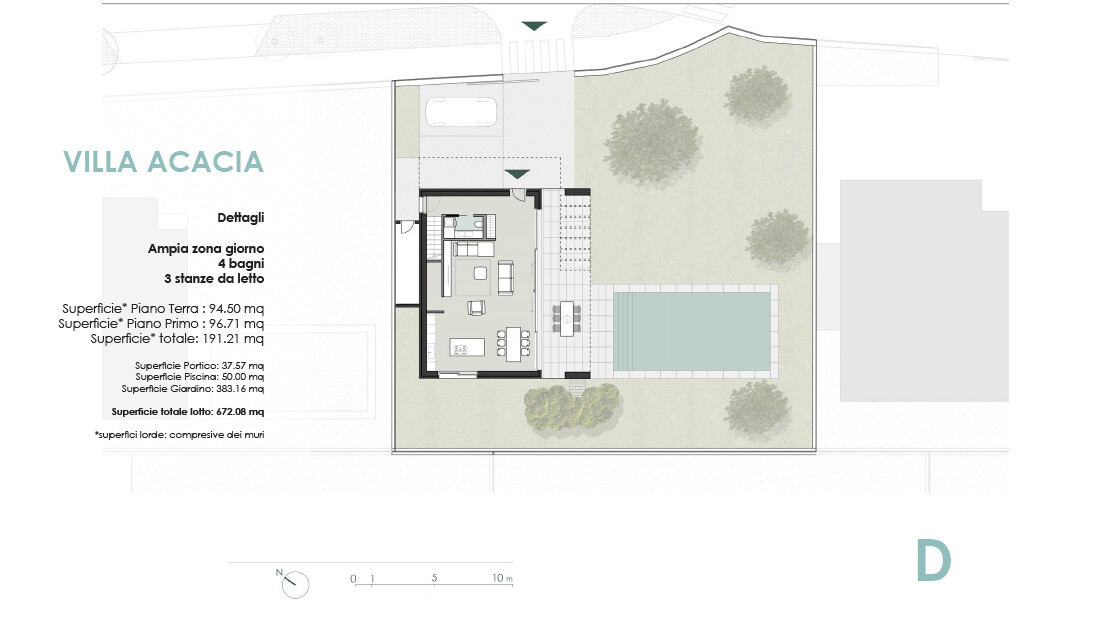 В Монига-дель-Гарда, всего в 100 метрах от берега озера, на участке с пологим склоном к озеру будут построены 8 престижных отдельно стоящих вилл эксклюзивного дизайна класса А+ с тепло- и звукоизоляцией.